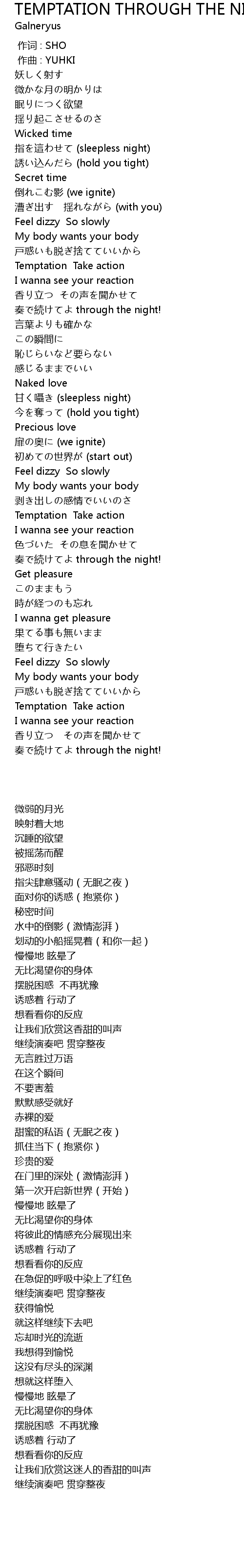 | Song | TEMPTATION THROUGH THE NIGHT (Work In Progress Version) |