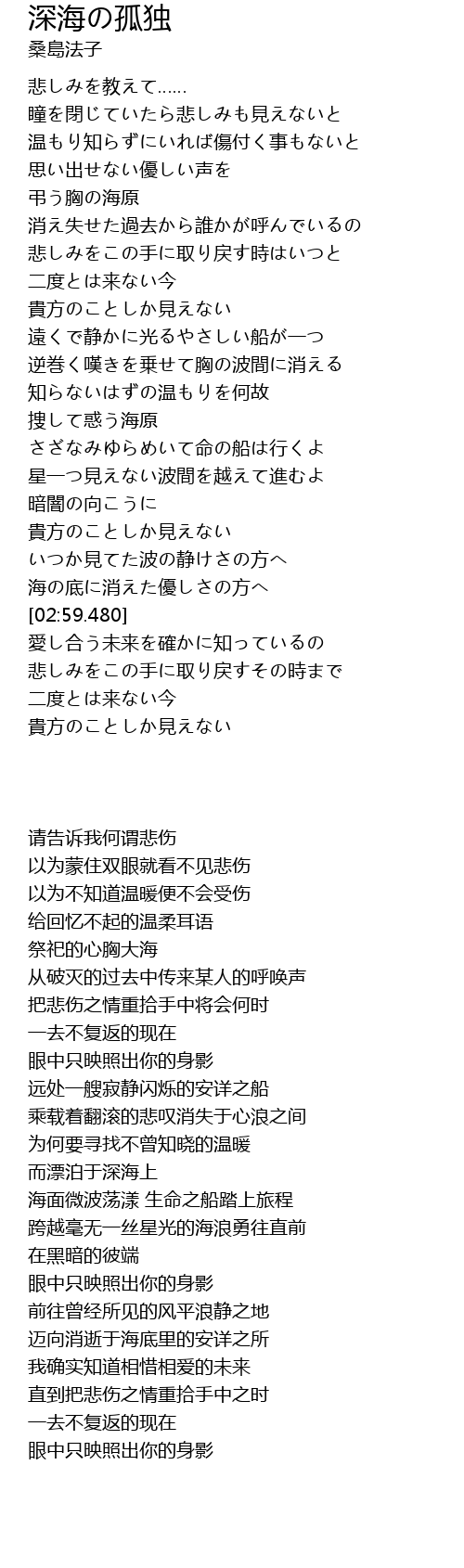 | [02:50.560] | 海の底に消えた優しさの方へ |