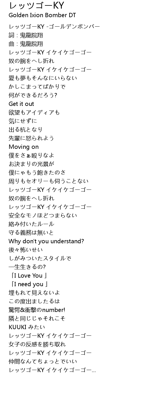 | [00:02.70] | レッツゴーKY イケイケゴーゴー |