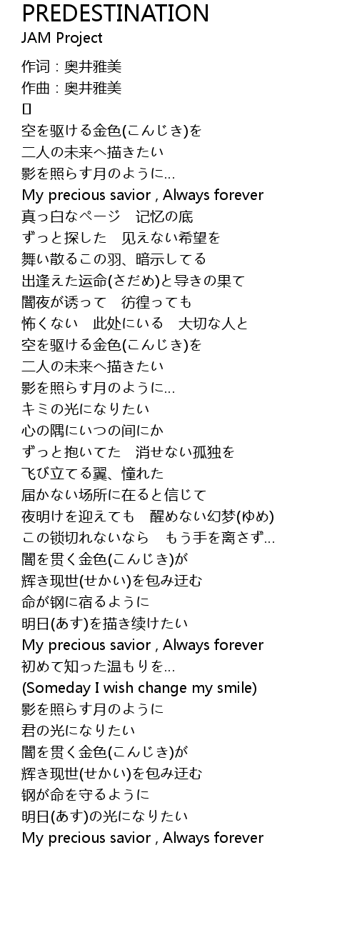 | Song | PREDESTINATION |