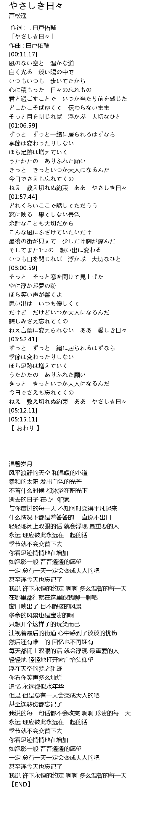 | [00:03.17] | 「やさしき日々」 |