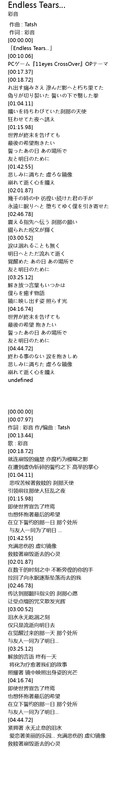 | [00:13.44] | PCゲーム『11eyes CrossOver』OPテーマ |