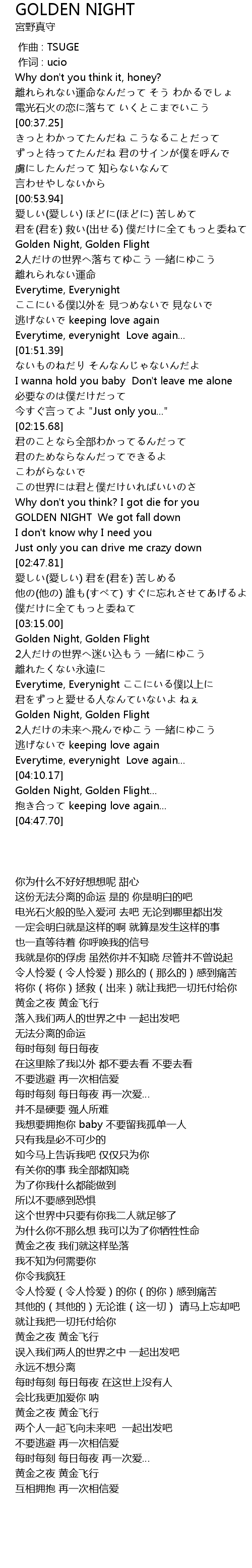 | [02:34.92] | GOLDEN NIGHT We got fall down |