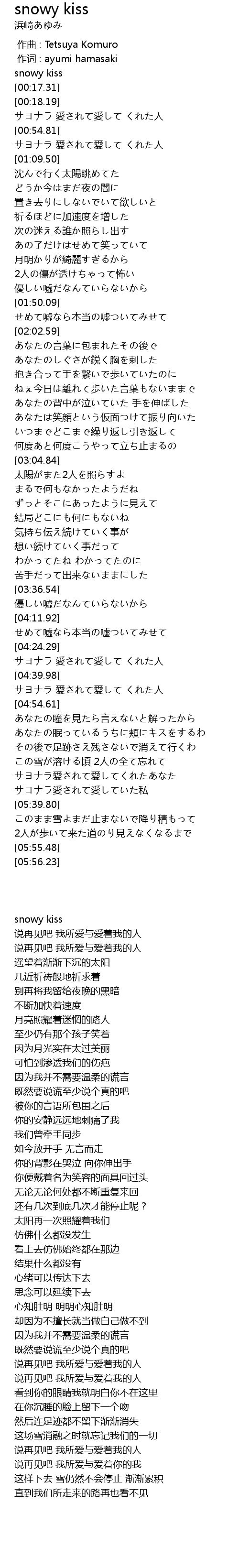 | [05:18.67] | この雪が溶ける頃 2人の全て忘れて |