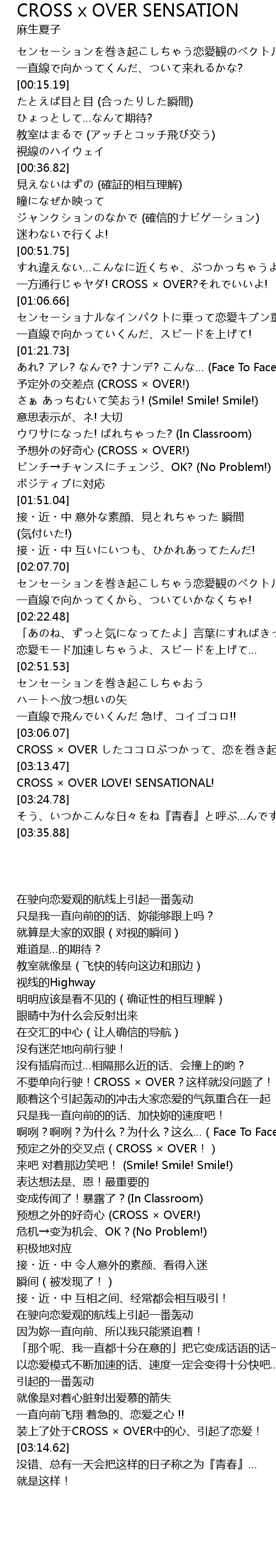 | [03:14.62] | CROSS × OVER LOVE! SENSATIONAL! |
