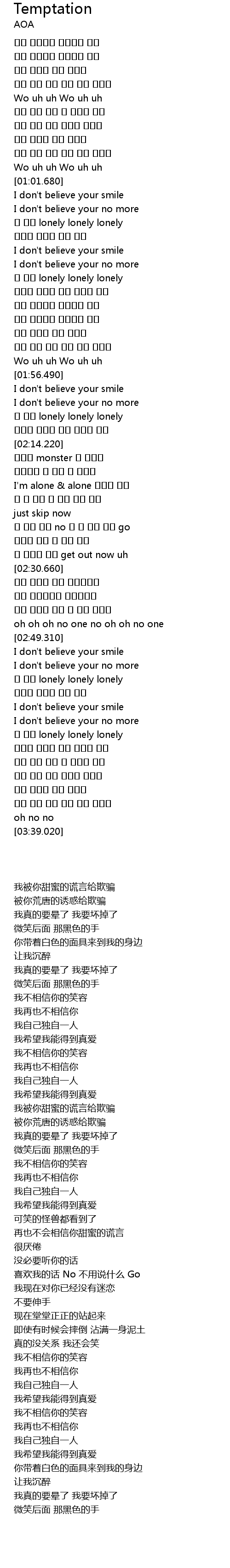 | [01:38.820] | 그저 황홀했던 유혹들에 속아 |