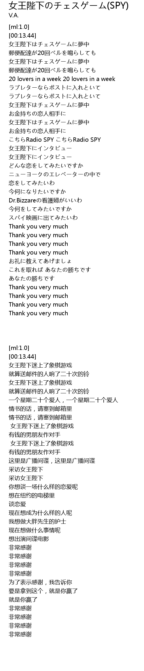 | [00:44.03] | 女王陛下はチェスゲームに夢中 |