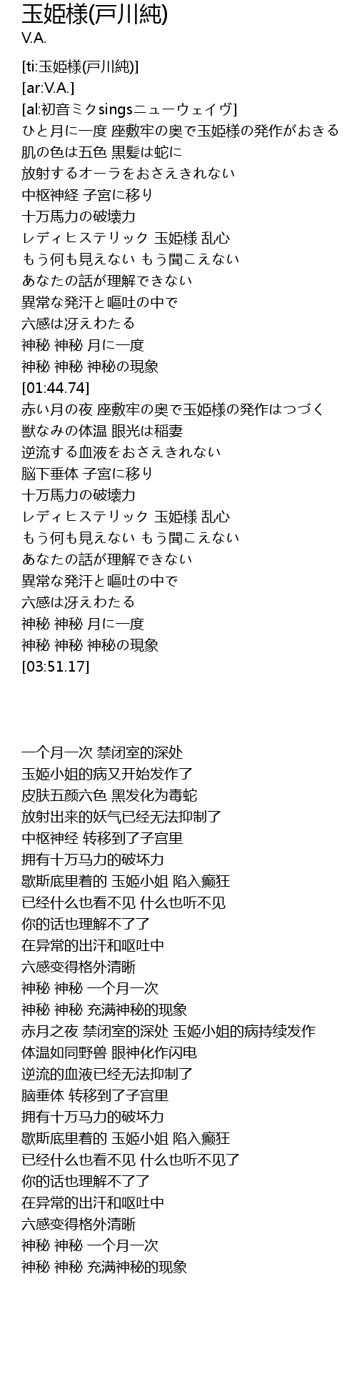 | [02:55.19] | レディヒステリック 玉姫様 乱心 |