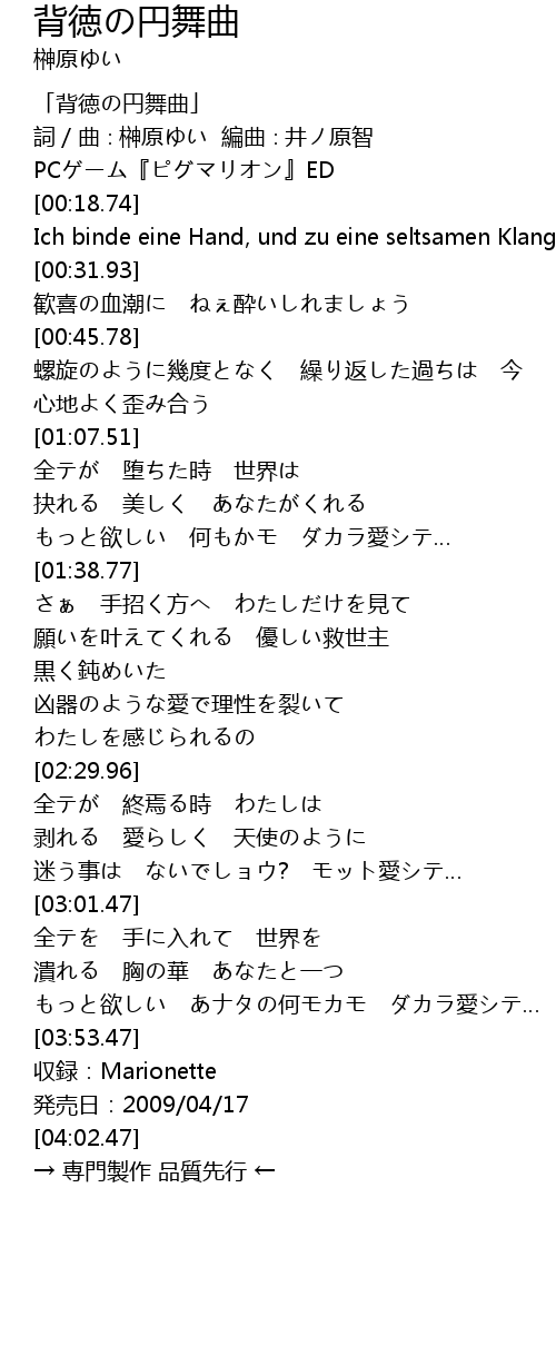 | [00:11.74] | PCゲーム『ピグマリオン』ED |