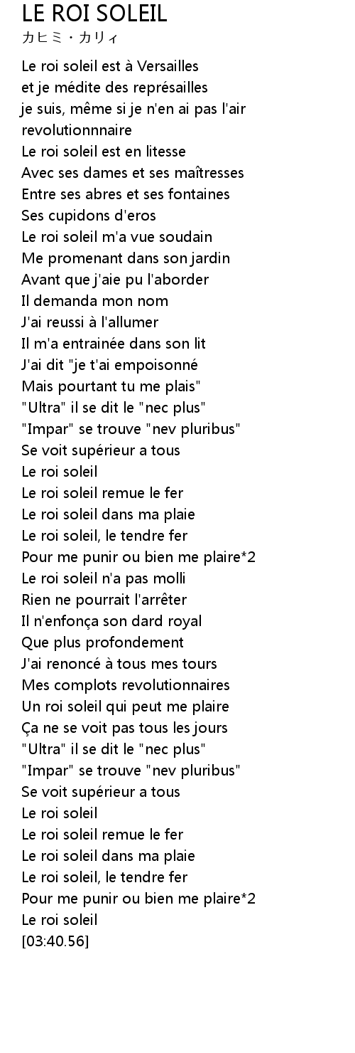 | [03:25.65] | Le roi soleil |
