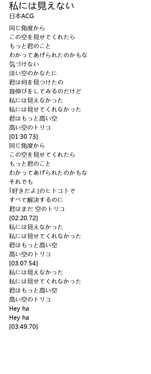 | [00:57.10] | 背伸びをしてみるのだけど |