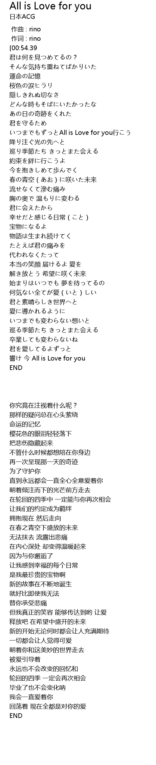 | [03:40.07] | xiǎng jīn All is Love for you |