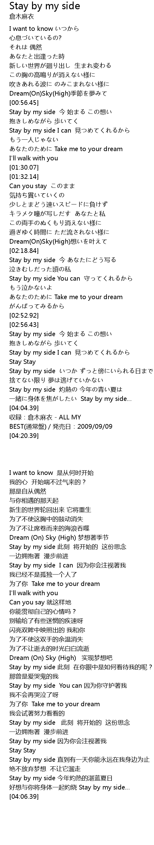 | [02:58.43] | Stay by my side jīn shǐ xiǎng |