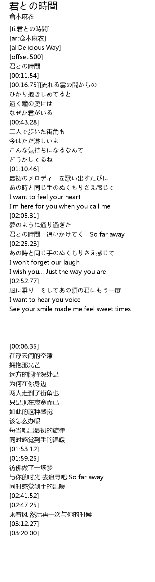 | [02:13.12] | 君との時間 追いかけてく So far away |