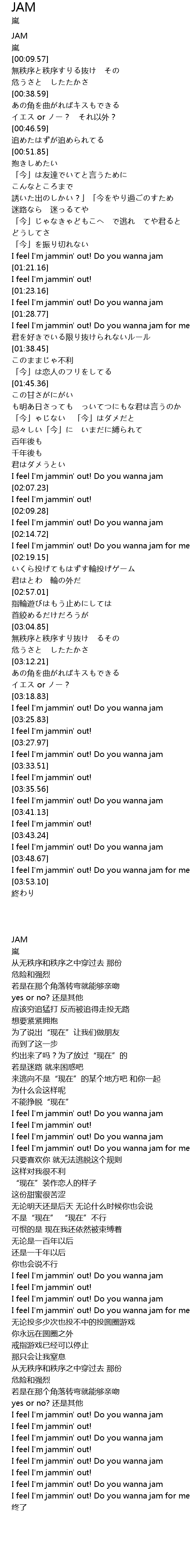 | [03:22.71] | I feel I' m jammin' out! Do you wanna jam |