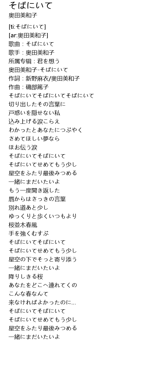 | [00:06.75] | 奥田美和子-そばにいて |