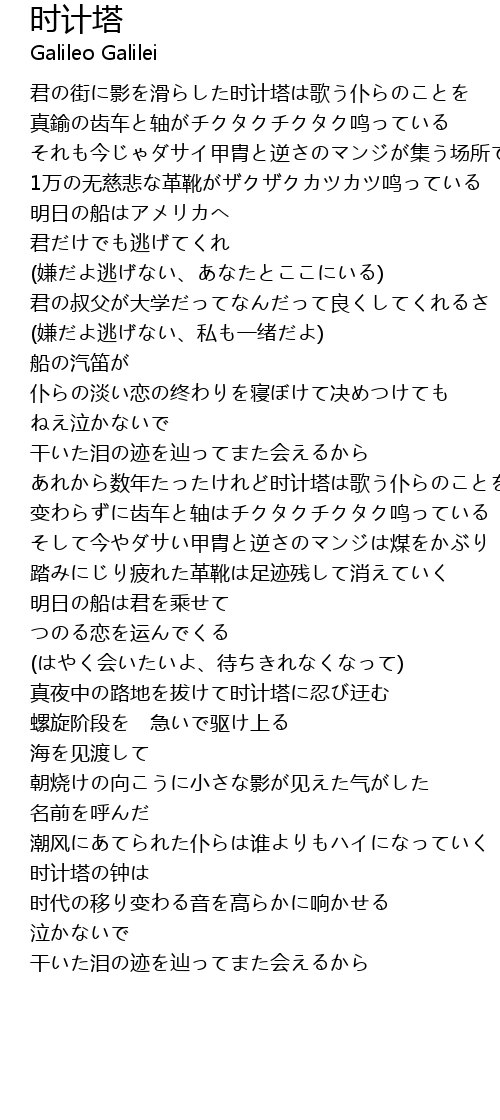 | [00:15.42] | 君の街に影を滑らした时计塔は歌う仆らのことを |