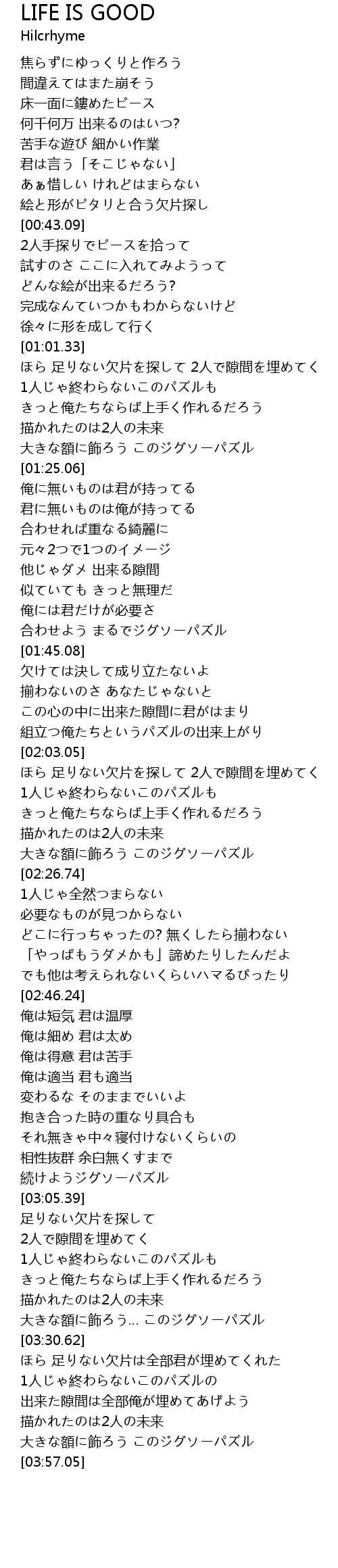 | [01:42.56] | 合わせよう まるでジグソーパズル |