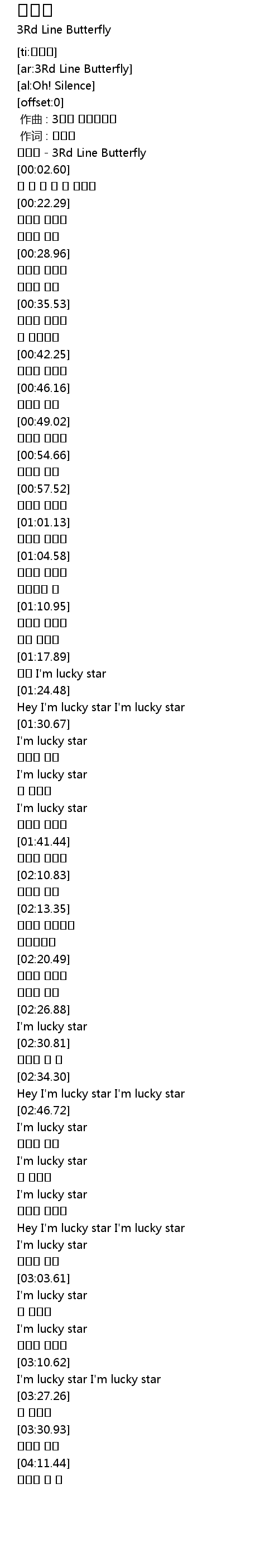 | [00:00.00] | 作曲 : 3호선 버터플라이 |