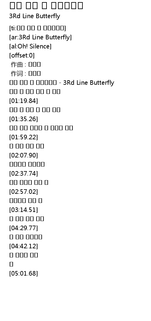 | [00:01.63] | 엄마 우린 왜 어지러워요 - 3Rd Line Butterfly |