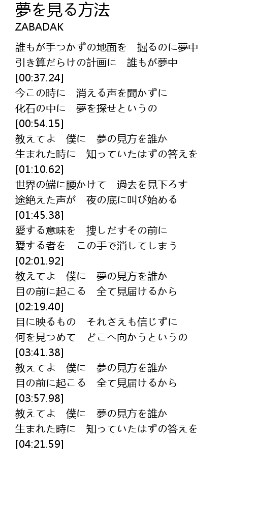 | [03:58.65] | 教えてよ 僕に 夢の見方を誰か |