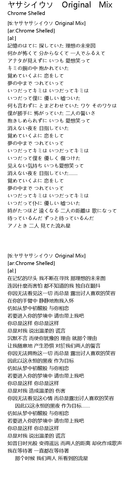 | [ti:ヤサヤサシイウソ Original Mix] | |