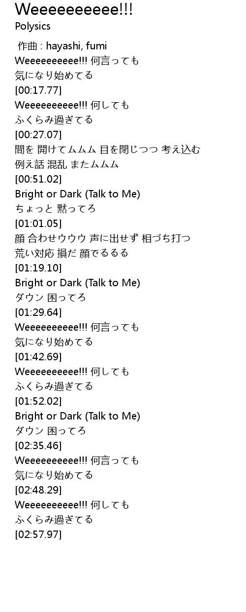 | [02:17.34] | Bright or Dark Talk to Me |