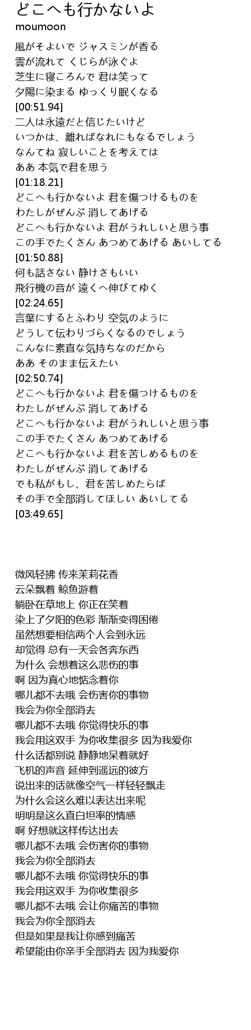 | [02:53.57] | どこへも行かないよ 君を傷つけるものを |