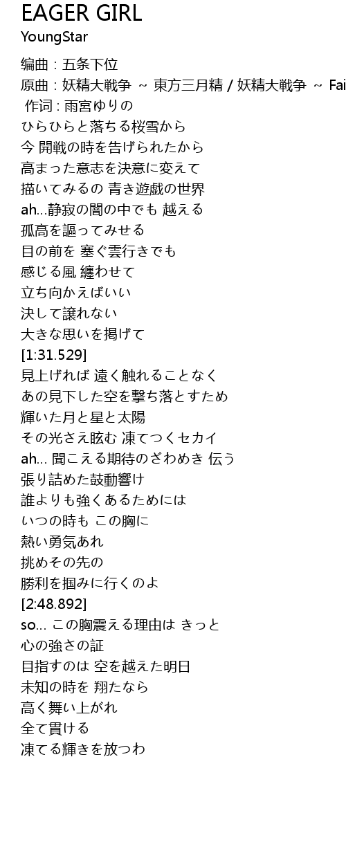 | [00:00.00] | 作词 : 雨宮ゆりの |