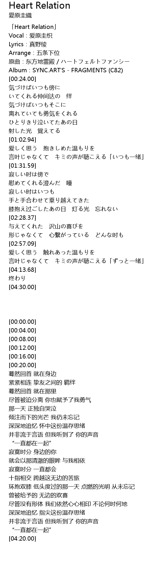 | [00:00.00] | 「Heart Relation」 |
