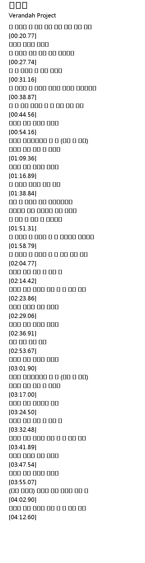 | [03:34.44] | 그토록 내가 바랬던 나의 꿈 내 삶의 이유 |
