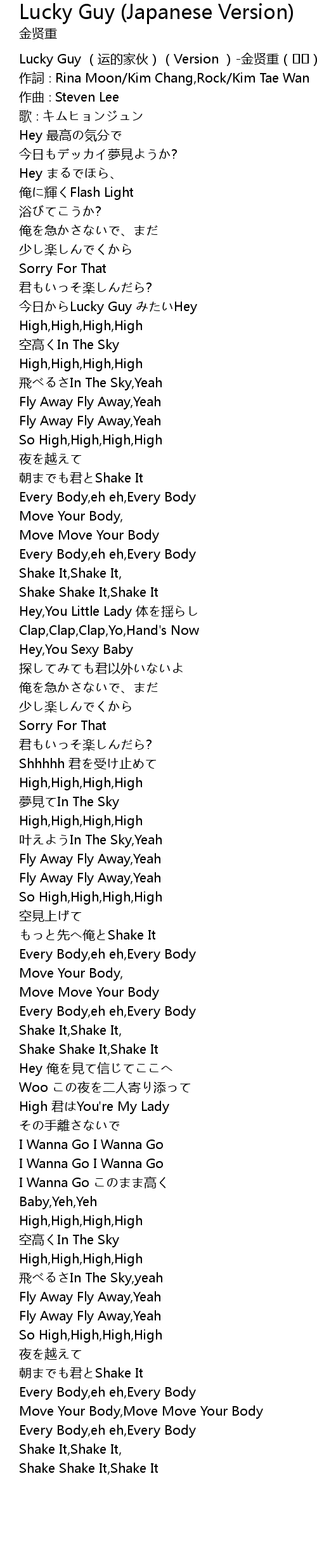 | [00:00.00] | Lucky Guy yùn de jiā huo Version jīn xián zhòng |