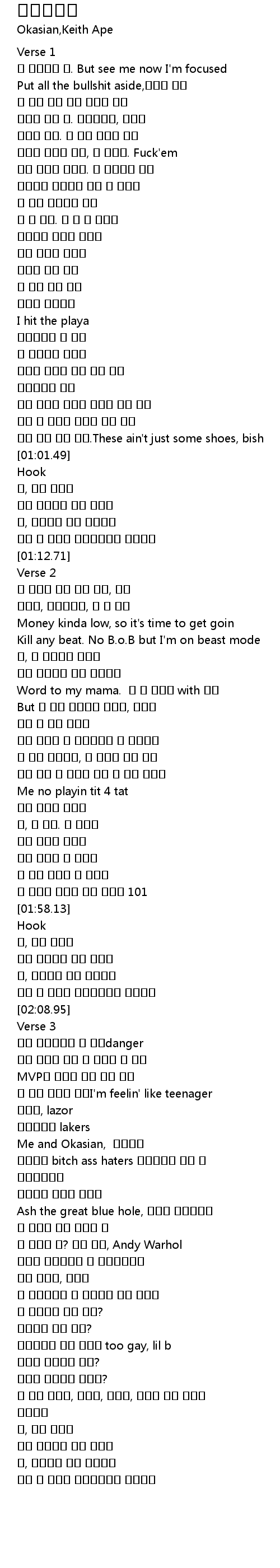 | [02:26.02] | 밑에있던 bitch ass haters 부러우니까 괜히 더 깎아내리지만 |