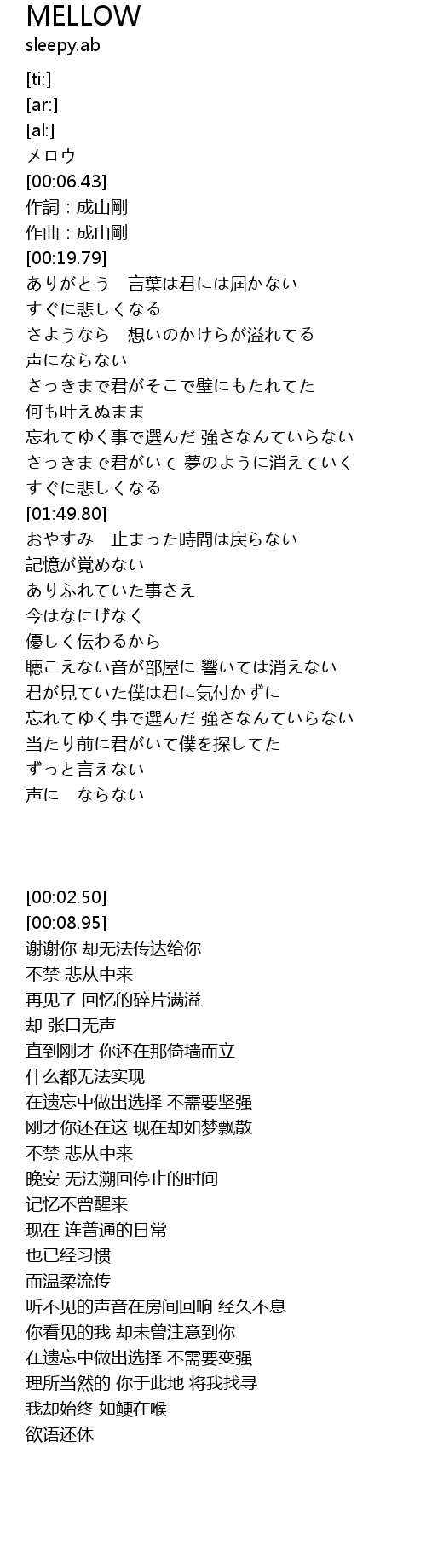 | [00:02.50] | メロウ |