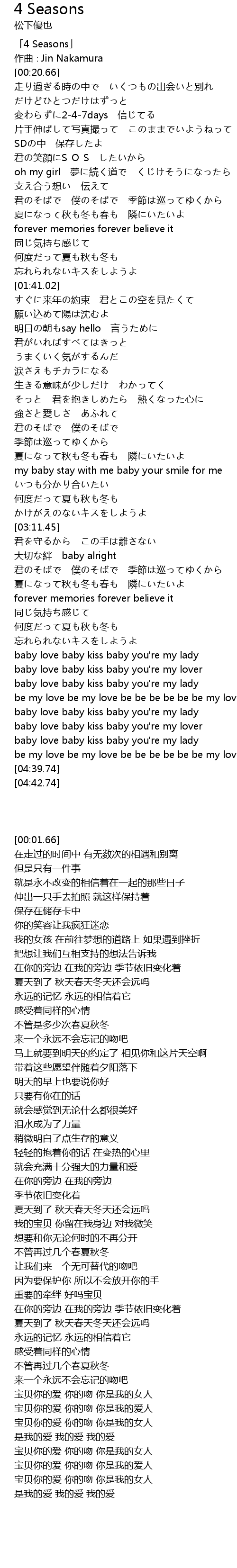 | [03:45.60] | 夏になって秋も冬も春も 隣にいたいよ |