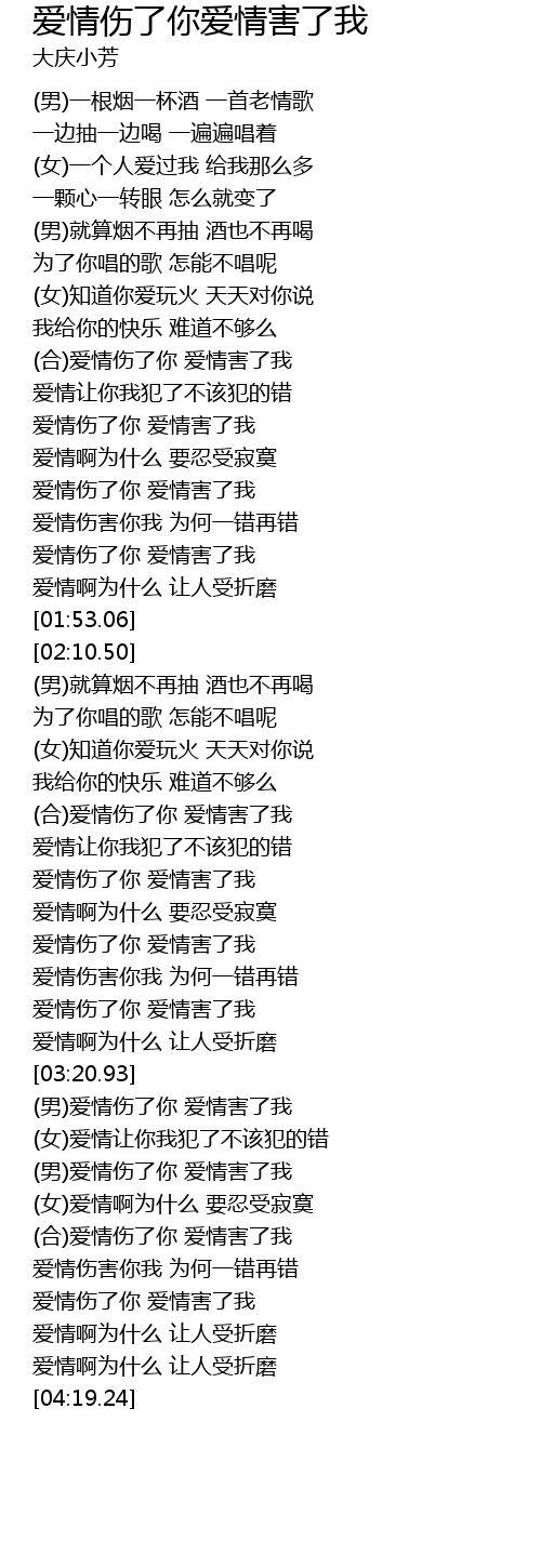 | [02:58.00] | 爱情伤了你 爱情害了我 |