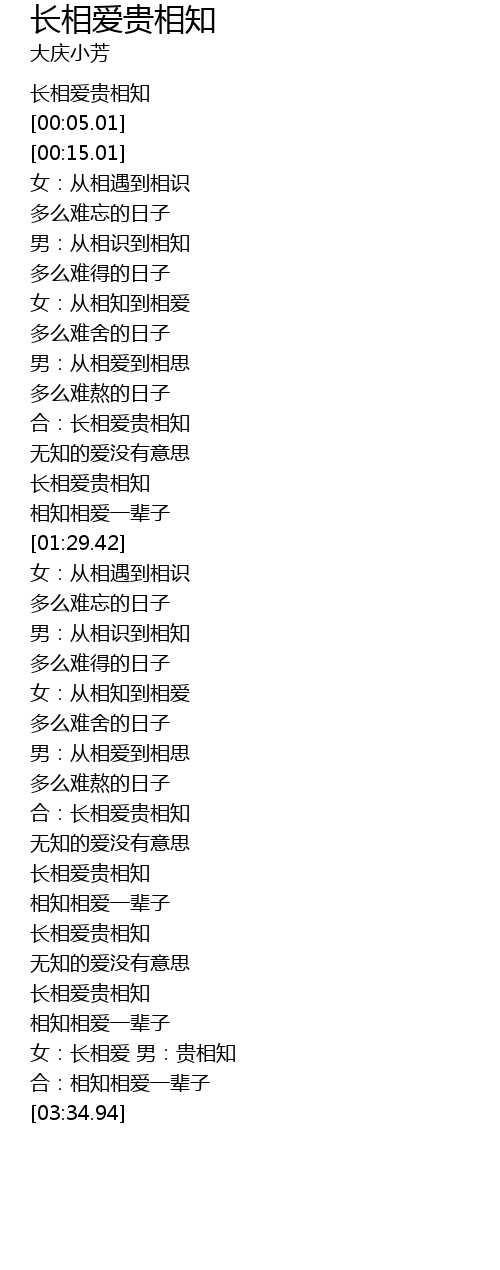| [03:18.46] | 女:长相爱 男:贵相知 |