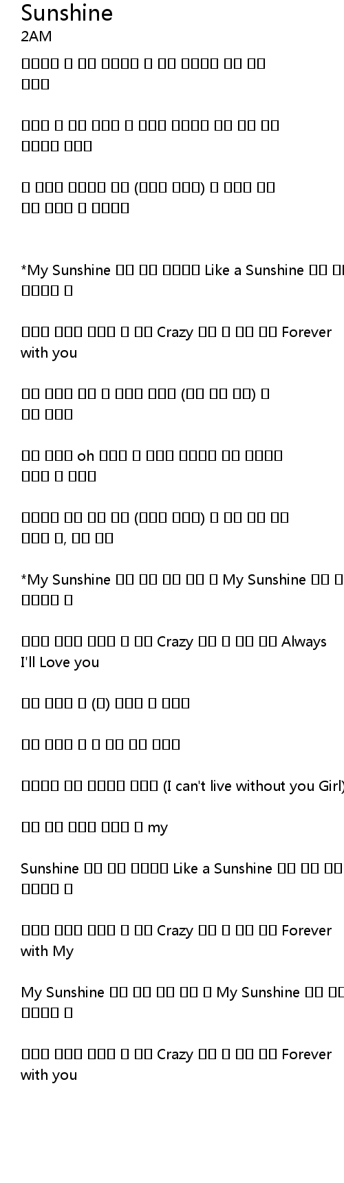 *My Sunshine 매일 꿈을 꾸는듯해 Like a Sunshine 내겐 보석 같은 너이기에 난 |