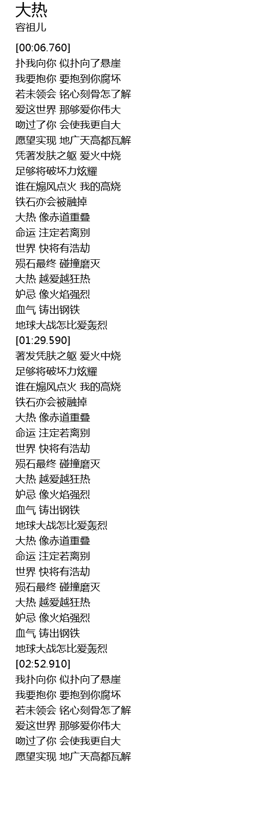 | [02:40.810] | 大热 越爱越狂热 |