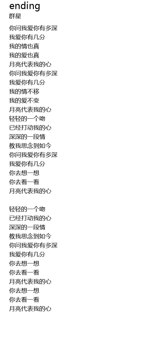 | nǐ wèn wǒ ài nǐ yǒu duō shēn | |