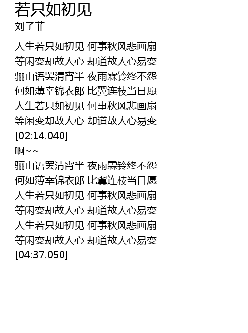 | [01:36.680] | 人生若只如初见 何事秋风悲画扇 |