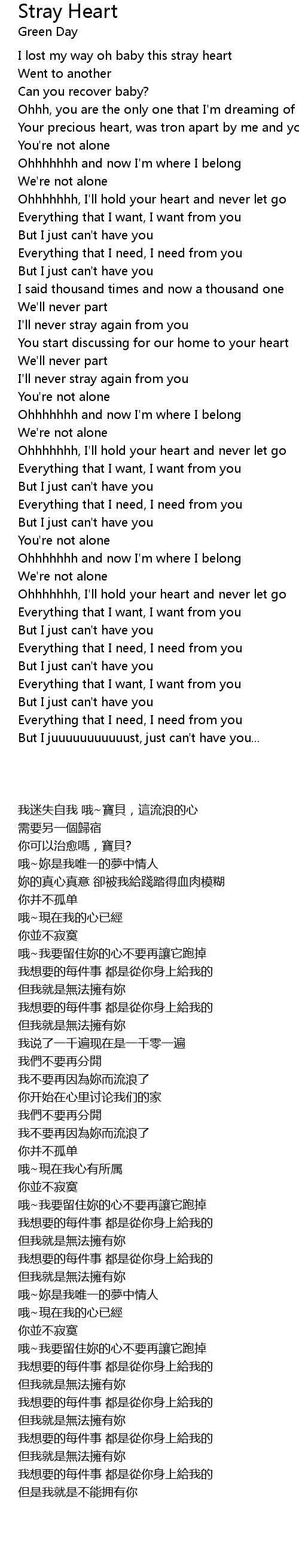 | [00:04.980] | I lost my way oh baby this stray heart |