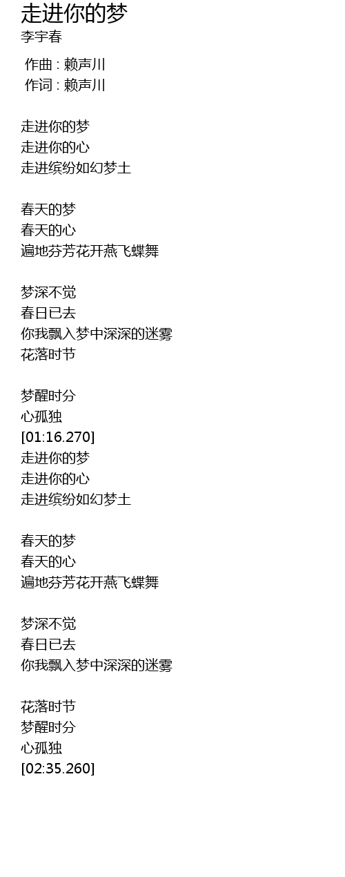| [01:44.950] | 走进你的梦 |