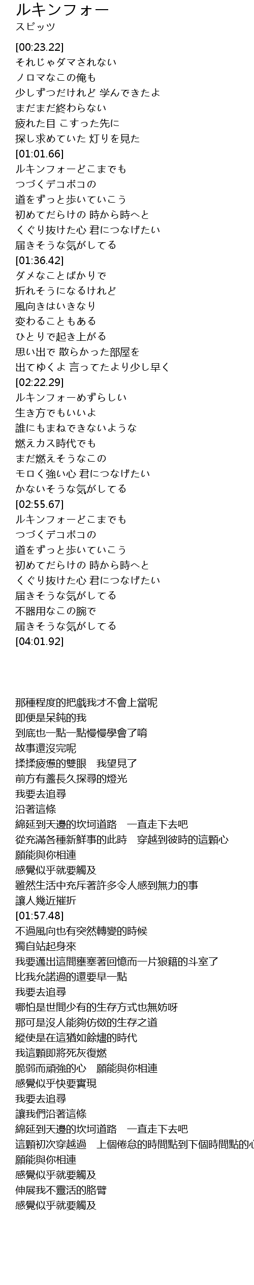 | [03:17.32] | ルキンフォーどこまでも |