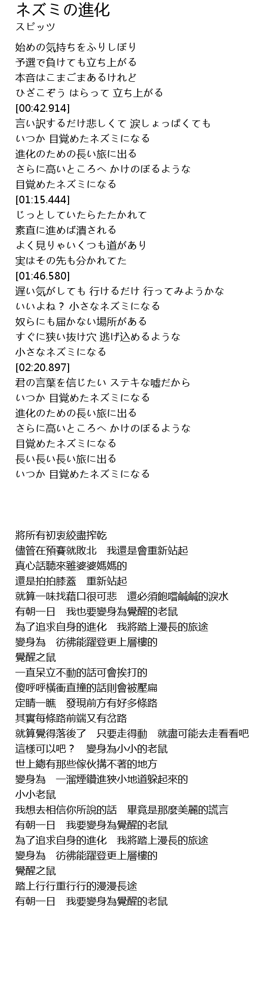 | Song | ネズミの進化 |