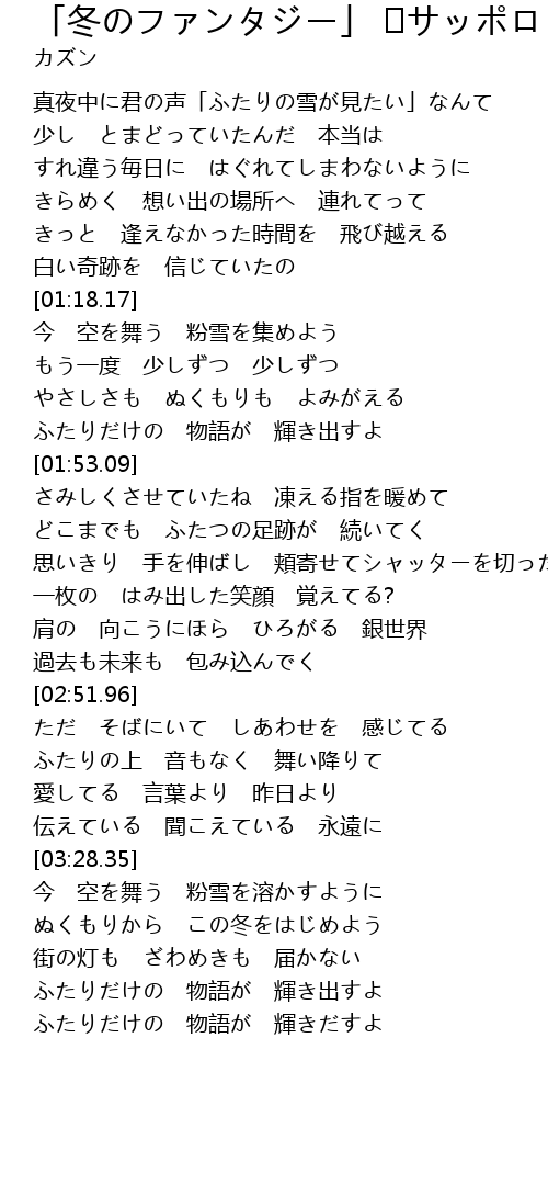| [04:02.67] | ぬくもりから この冬をはじめよう |
