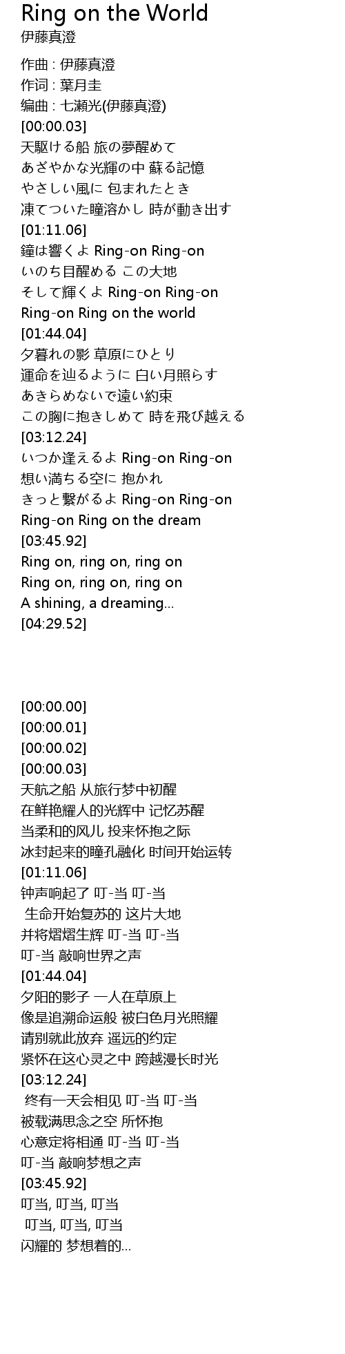 | [03:13.24] | いつか逢えるよ Ring-on Ring-on |