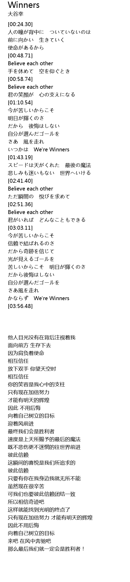| [03:50.70] | かならず We're Winners |