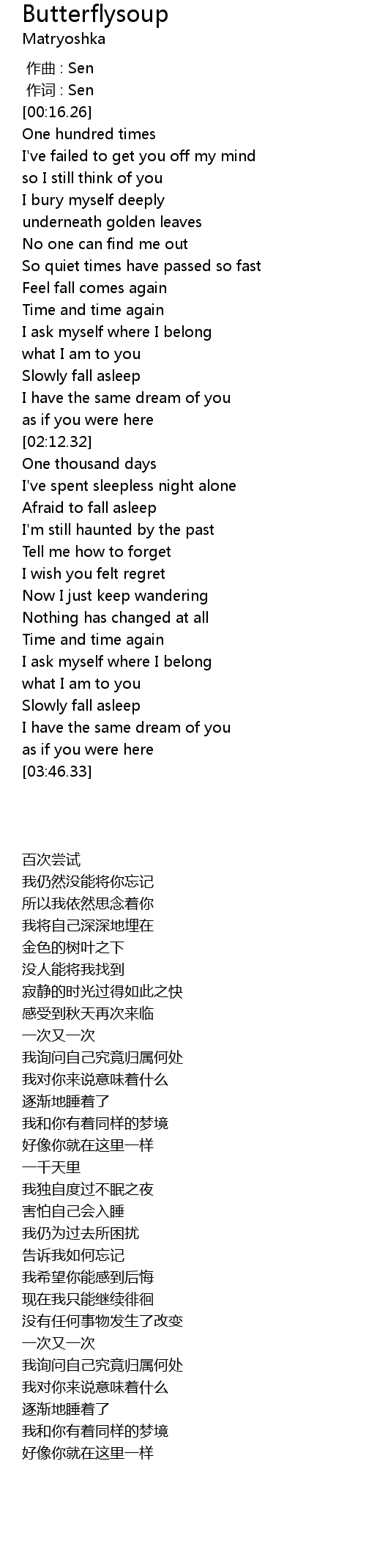 | [00:01.00] | 作词 : Sen |