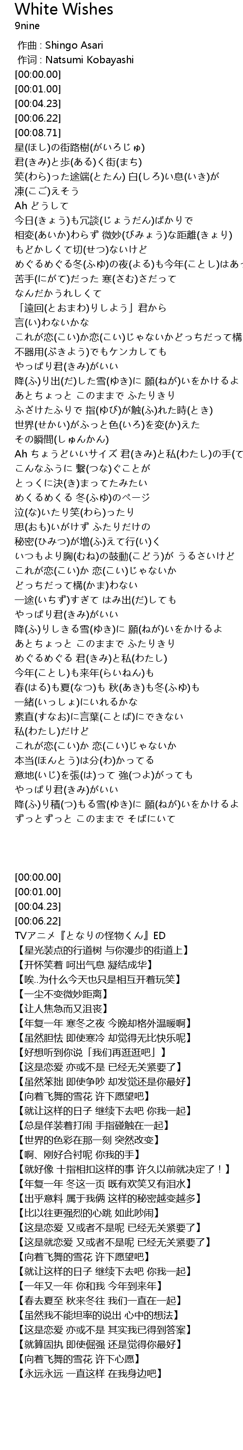 | [00:00.00] | 作词 : Natsumi Kobayashi |